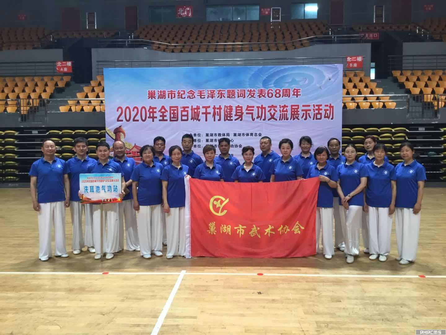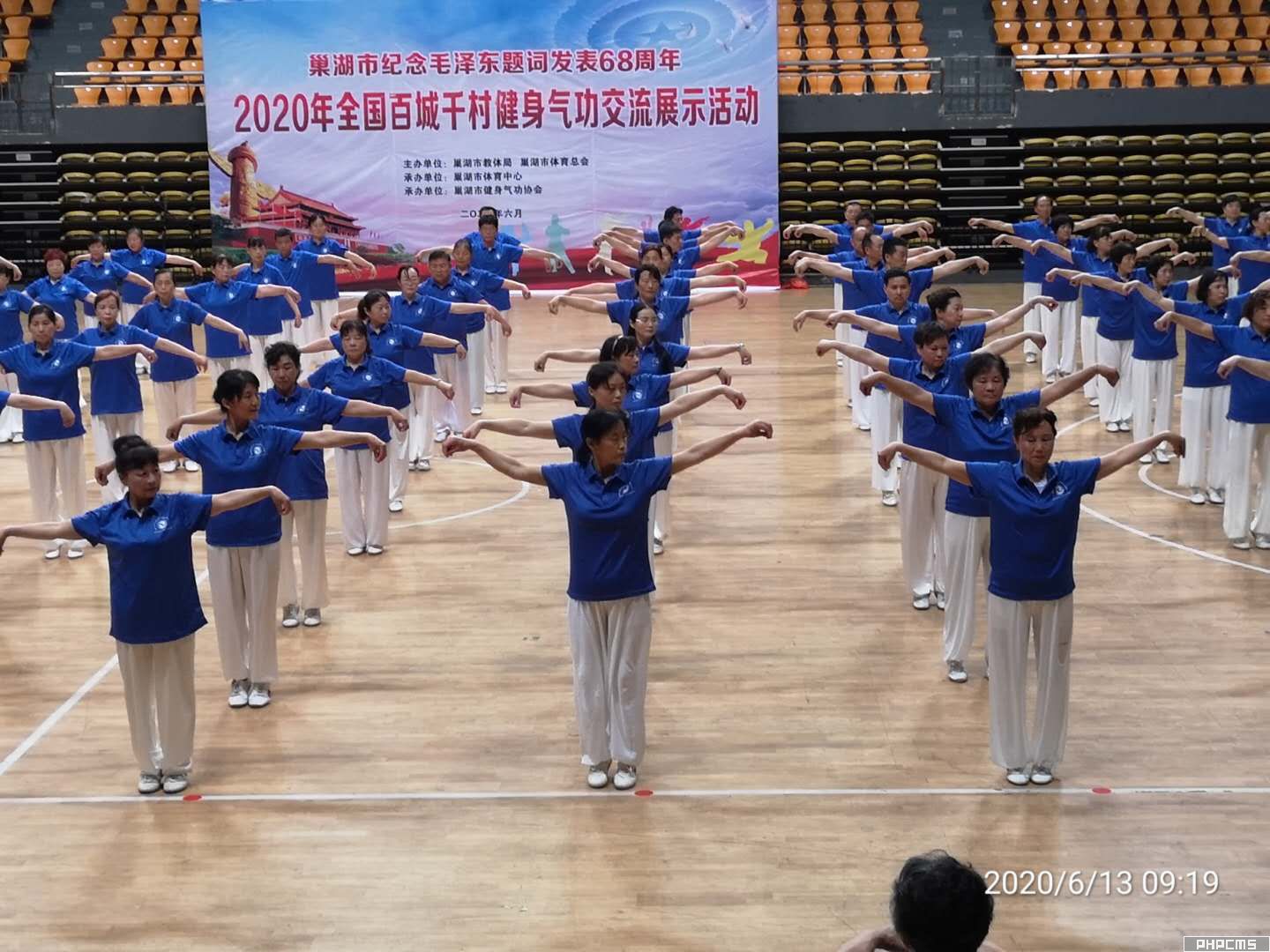 2020年6月13日巢湖市武术协会会员、弘巢武术搏击馆学员、周德俊陈氏太极拳交流中心学员、洗耳池健身气功站人员参加了由巢湖市教体局、巢湖市体育总会主办,巢湖市体育中心、巢湖市健身气功协会承办的纪念毛泽东题词发表68周年2020年全国百城千村健身气功交流展示活动!